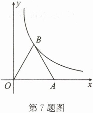 7. 如图,点$A$的坐标是$(2,0)$,$△ ABO$是等边三角形,点$B$在第一象限。若反比例函数$y=\frac{k}{x}$的图象经过点$B$,求$k$的值。