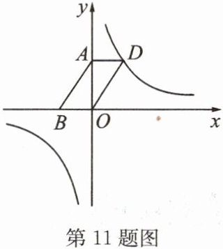 (2)如图,若该反比例函数的图象经过$□ ABOD$的顶点$D$,点$A$,$B$的坐标分别为$(0,3)$,$(-2,0)$,求该反比例函数的解析式;