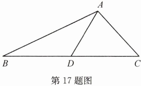 17. 如图,$ AD $ 是 $ △ ABC $ 的中线,$ \tan B = \dfrac{1}{3} $,$ \cos C = \dfrac{\sqrt{2}}{2} $,$ AC = \sqrt{2} $.