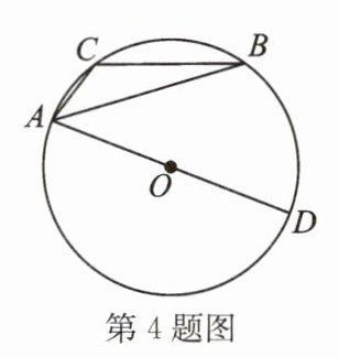 4. 如图,$ \odot O $ 是 $ △ ABC $ 的外接圆,$ AD $ 是 $ \odot O $ 的直径,若 $ \odot O $ 的半径是 $ 4 $,$ \sin B = \dfrac{1}{4} $,则线段 $ AC $ 的长为