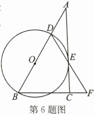 6. 如图,在 $ \mathrm{Rt} △ ABC $ 中,$ ∠ ACB = 90^{\circ} $,$ D $ 是 $ AB $ 边上一点,以 $ BD $ 为直径的 $ \odot O $ 与边 $ AC $ 相切于点 $ E $,连接 $ DE $ 并延长,与 $ BC $ 的延长线交于点 $ F $.