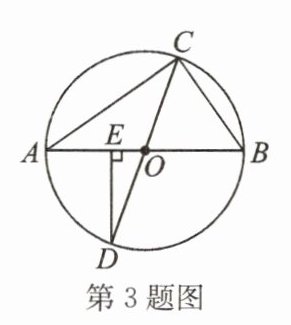 3. 如图,$ △ ABC $ 内接于 $ \odot O $,$ AB $,$ CD $ 为 $ \odot O $ 的直径,$ DE ⊥ AB $ 于点 $ E $,$ \sin A = \dfrac{1}{2} $,则 $ ∠ D $ 的度数是