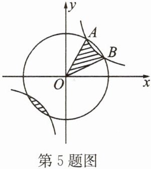 5. 如图,反比例函数 $ y=\frac{k}{x}(k>0) $ 的图象与以原点 $ O(0,0) $ 为圆心的圆交于 $ A $,$ B $ 两点,且 $ A(1,\sqrt{3}) $,图中阴影部分的面积等于