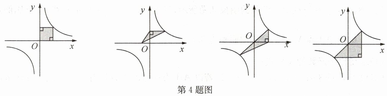 4. 如图均为反比例函数 $ y=\frac{6}{x} $ 的图象,其中阴影部分的面积为 $ 6 $ 的有(