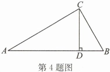 4. 如图,在 $ \mathrm{Rt} △ ABC $ 中,$ ∠ ACB = 90^{\circ} $,$ AC = 8 $,$ BC = 6 $,$ CD ⊥ AB $,垂足为 $ D $,则 $ \tan ∠ BCD $ 的值是