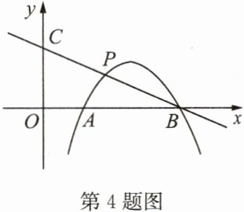4. 如图,在平面直角坐标系中,抛物线 $ y = -x^{2} + ax + b $ 交 $ x $ 轴于 $ A(1,0) $,$ B(3,0) $ 两点,点 $ P $ 是抛物线上在第一象限内的一点,直线 $ BP $ 与 $ y $ 轴相交于点 $ C $。