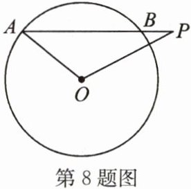 8. 如图,$\odot O$的半径为$5\ cm$,弦$AB$的长为$8\ cm$,$P$是$AB$延长线上的一点,$BP = 2\ cm$,则$\tan ∠ OPA$等于(