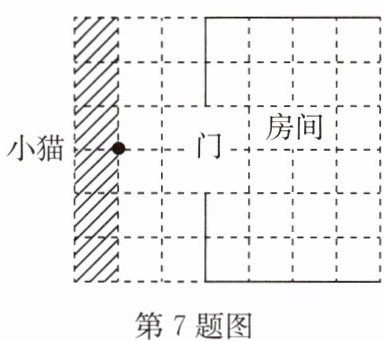 7. (2023·泰州模拟)如图,地面由相同的正方形地砖铺成,小猫在房间门外阴影部分区域(包括边界)观察房间内最大视角的正弦值为