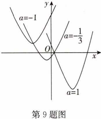 9. 如图,已知二次函数 $ y = (x - 3a)^2 - (3a + 2) $ ($ a $ 为常数),当 $ a $ 取不同的值时,其图像构成一个“抛物线系”.图中所示分别是当 $ a = -1 $,$ a = -\frac{1}{3} $,$ a = 1 $ 时对应的二次函数的图像,则该“抛物线系”的顶点所满足的函数表达式为