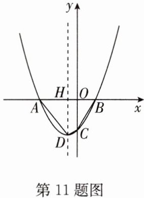11. 如图,在平面直角坐标系 $ xOy $ 中,抛物线 $ y = a(x + 1)^2 - 3 $ 与 $ x $ 轴交于 $ A $,$ B $ 两点(点 $ A $ 在点 $ B $ 的左侧),与 $ y $ 轴交于点 $ C(0,-\frac{8}{3}) $,顶点为 $ D $,对称轴与 $ x $ 轴交于点 $ H $.