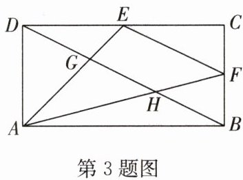 3. 如图,在矩形 ABCD 中,$AB=2AD$,点 E 在 CD 上,$∠ DAE=45^{\circ}$,F 为 BC 的中点,连接 AE,AF,分别交 BD 于点 G,H,连接 EF.