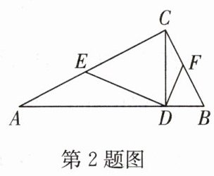 2. 如图,在$△ABC$中,$∠ACB = 90^{\circ}$,$CD⊥AB$于点$D$,$E$,$F$分别为$AC$,$BC$上的点,且$DE⊥DF$,$\frac{BD}{AD} = \frac{1}{4}$.