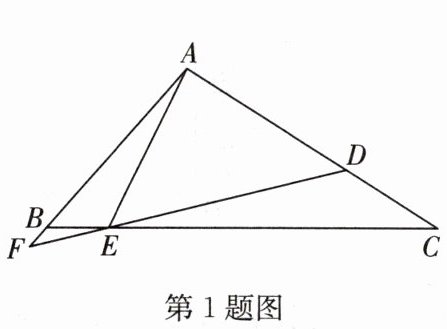 1. 如图,在$△ABC$中,$D$,$E$分别是边$AC$,$BC$上的点,$DE$与$AB$的延长线交于点$F$,若$∠AED = ∠ABC$,$AF = 9$,$EF = 3$,则$BF$的长为