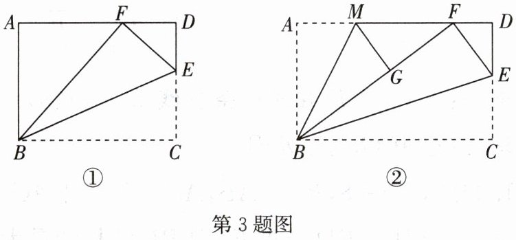 3. 在矩形 $ ABCD $ 中,$ BC > AB $。沿过点 $ B $ 的直线折叠矩形,使点 $ C $ 落在 $ AD $ 边上点 $ F $ 处,折痕为 $ BE $。