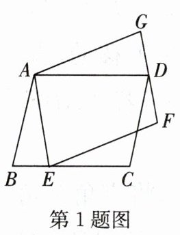 1. 如图,将平行四边形$ABCD$绕点$A$逆时针旋转得到平行四边形$AEFG$,使点$E$落在边$BC$上,且$D$恰好是$FG$的中点,若$\frac{AB}{AD}=\frac{4}{5}$,则$\frac{BE}{CE}$的值为