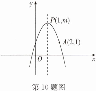 10. 如图,二次函数 $ y = ax^{2}+bx + c(a,b,c $ 为常数)的图像的顶点为 $ P(1,m) $,经过点 $ A(2,1) $,有以下结论:① $ a < 0 $;② $ abc > 0 $;③ $ 4a + 2b + c = 1 $;④ $ x > 1 $ 时,$ y $ 随 $ x $ 的增大而减小;⑤对于任意实数 $ t $,总有 $ at^{2}+bt ≤ a + b $.其中正确的有