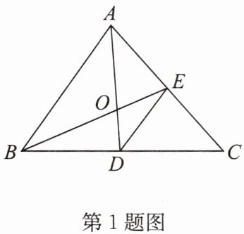 1. 如图,在$△ ABC$中,$BD = DC$,$AE = EC$,$AD$与$BE$相交于点$O$,则下列结论错误的是(