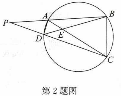 2. 如图,圆内接四边形$ABCD$中,$BA$,$CD$的延长线交于点$P$,$AC$,$BD$交于点$E$,则图中相似三角形有(