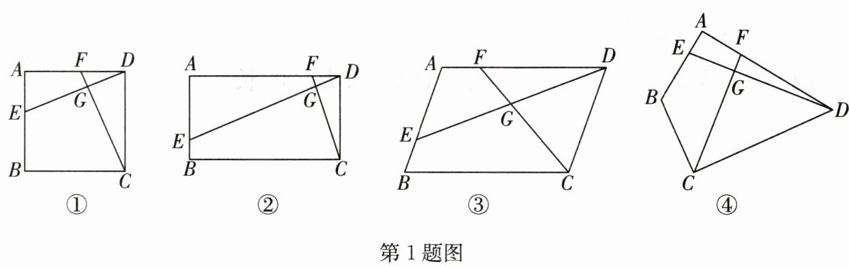 1. (2024·深圳期末)已知四边形 $ABCD$ 中,$E,F$ 分别是 $AB,AD$ 边上的点,$DE$ 与 $CF$ 交于点 $G$.