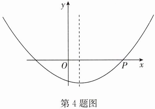 4. 如图,抛物线$y = ax^2 + bx + c(a > 0)$的对称轴是过点$(1,0)$且平行于$y$轴的直线,若点$P(5,0)$在抛物线上,则$9a - 3b + c$的值是