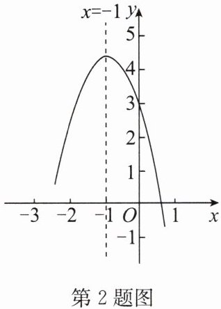 2. (2024·绥化)二次函数$y = ax^2 + bx + c$的部分图像如图所示,对称轴为直线$x = -1$,有下列结论:①$\frac{b}{c} > 0$;②$am^2 + bm ≤ a - b$($m$为任意实数);③$3a + c < 1$;④若$M(x_1,y)$,$N(x_2,y)$是抛物线上不同的两个点,则$x_1 + x_2 ≤ -3$。其中正确的结论有(
