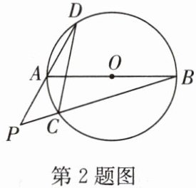 2. 如图,$AB$为$\odot O$的直径,$CD$为$\odot O$的弦,直线$AD$与$BC$相交于点$P$。