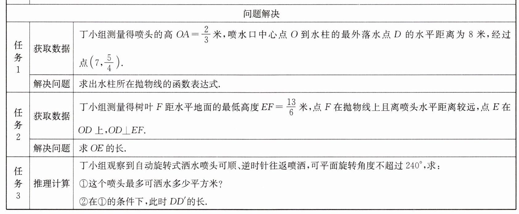 2.解:任务1 由题意,得抛物线经过点D(8,0),(7,$\frac{5}{4}$),A(0,$\frac{2}{3}$),设抛物线的函数表达式为y=ax²+bx+c,