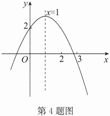 4. (2024·泰安)如图是二次函数 $ y = ax^{2} + bx + c $ 的部分图像,该函数图像的对称轴是直线 $ x = 1 $,图像与 $ y $ 轴交点的纵坐标是 2,则下列结论:① $ 2a + b = 0 $;②方程 $ ax^{2} + bx + c = 0 $ 一定有一个根在 $ -2 $ 和 $ -1 $ 之间;③方程 $ ax^{2} + bx + c - \dfrac{3}{2} = 0 $ 一定有两个不相等的实数根;④ $ b - a < 2 $。其中,正确的结论有(