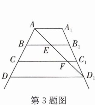3. 如图是一架梯子的示意图,其中$ AA_{1} // BB_{1} // CC_{1} // DD_{1} $,且$ AB=BC=CD $. 为使其更稳固,在$ A,D_{1} $间加绑一条安全绳(线段$ AD_{1} $),量得$ AE=0.4 \mathrm{~m} $,则$ AD_{1}= $