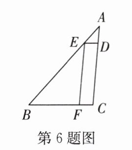 6. (2023·恩施州)如图,在$ △ ABC $中,$ DE // BC $分别交$ AC,AB $于点$ D,E $,$ EF // AC $交$ BC $于点$ F $,$ \frac{AE}{BE}=\frac{2}{5} $,$ BF=8 $,则$ DE $的长为 (