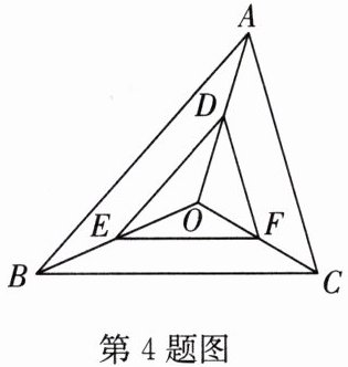 4. 如图,$O$是$△ ABC$内一点,$D$,$E$,$F$分别是$OA$,$OB$,$OC$的中点. 求证:$△ ABC ∽ △ DEF$.