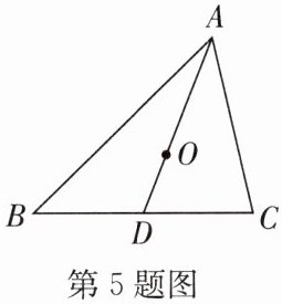 5. 如图,若点 O 是△ABC 的重心,连接 AO 并延长交 BC 于点 D,求证:$\frac{AO}{AD}=\frac{2}{3}$.