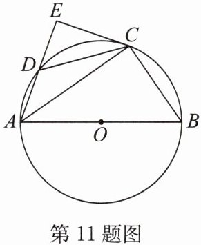 11. (2023·常德)如图,四边形 ABCD 是⊙O 的内接四边形,AB 是直径,C 是$\overset{\LARGE{\frown}}{BD}$的中点,过点 C 作 CE⊥AD 交 AD 的延长线于点 E.