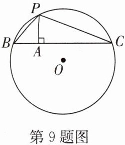 9. 如图,⊙O 的半径为 5,点 P 在⊙O 上,点 A 在⊙O 内,且 AP=3,过点 A 作 AP 的垂线交⊙O 于点 B,C.设 PB=x,PC=y,则 y 与 x 的函数表达式为
