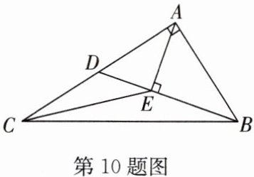 10. 证明: $ \because $ 在 $ △ ABC $ 中, $ ∠ BAC = 90^{\circ}, AE ⊥ BD $,
