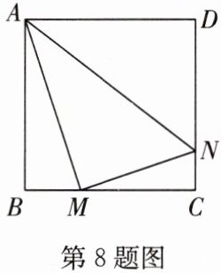 8. 如图,正方形$ABCD$的边长为$4$,$M$,$N$分别是$BC$,$CD$上的两个动点,当点$M$在$BC$上运动时,保持$AM$和$MN$垂直,设$BM = x$.