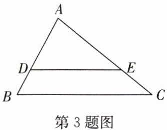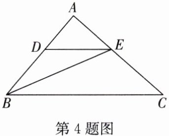 4. (2024·镇江模拟)如图,点$D$在$△ ABC$的$AB$边上,且$AD:AB = 2:5$,过点$D$作$DE// BC$,交$AC$于点$E$,连接$BE$,则$△ ABE$与$△ BEC$的面积之比为