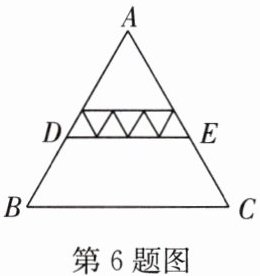 6. 如图,在等腰三角形$ABC$中,$AB = AC$,图中所有三角形均相似,其中最小的三角形面积为$1$,$△ ABC$的面积为$42$,则四边形$DBCE$的面积是(