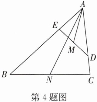 4. 如图,点$D$,$E$分别在$△ ABC$的边$AC$,$AB$上,$∠ ADE=∠ B$,$M$,$N$分别是$DE$,$BC$的中点,若$\frac{AM}{AN}=\frac{2}{5}$,则$\frac{S_{△ ADE}}{S_{△ ABC}}$的值为