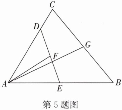 5. 如图,在$△ ABC$中,$D$,$E$分别是$AC$,$AB$上的点,且$∠ CDE+∠ B = 180^{\circ}$,$F$,$G$分别是$DE$,$BC$的中点。若$AD = 3$,$AB = 5$,$AG = 4$,求$AF$的长。