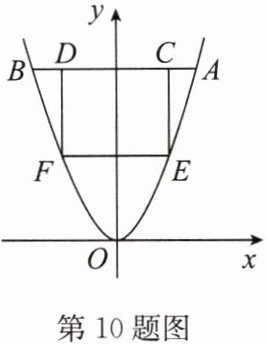 10. 如图,在平面直角坐标系中,点 $ A(2,4) $ 在抛物线 $ y = ax^{2} $ 上,过点 $ A $ 作 $ y $ 轴的垂线,交抛物线于另一点 $ B $,点 $ C $,$ D $ 在线段 $ AB $ 上,分别过点 $ C $,$ D $ 作 $ x $ 轴的垂线交抛物线于 $ E $,$ F $ 两点。当四边形 $ CDFE $ 为正方形时,线段 $ CD $ 的长为