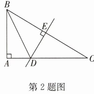 2. 如图,在 $ \mathrm{Rt} △ ABC $ 中,$ ∠ A = 90^{\circ} $,$ BC $ 的垂直平分线交 $ AC $ 于点 $ D $,交 $ BC $ 于点 $ E $。若 $ AD = \frac{1}{3}BD $,求 $ \tan ∠ ABC $ 的值。