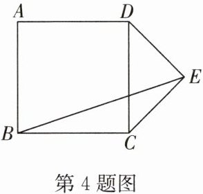 4. 如图,在正方形 $ ABCD $ 外作等腰直角 $ △ CDE $,$ DE = CE $,连接 $ BE $,求 $ ∠ EBC $ 的正切值。