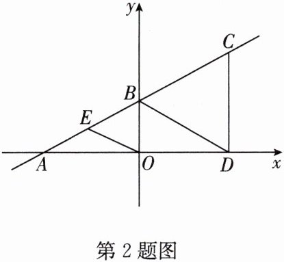 2. (2024·锡山区期末)如图,一次函数 $ y = \dfrac{1}{2}x + 2 $ 的图像分别交 $ x $ 轴,$ y $ 轴于 $ A $,$ B $ 两点,过该函数图像上一点 $ C(4,4) $ 作 $ CD ⊥ x $ 轴于点 $ D $,$ E $ 是线段 $ AB $ 上一动点,连接 $ BD $,$ EO $,若以 $ B $,$ E $,$ O $ 为顶点的三角形与 $ △ BCD $ 相似,求点 $ E $ 的坐标.