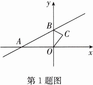 1. 如图,直线 $ y = \dfrac{1}{2}x + 1 $ 与 $ x $ 轴交于点 $ A $,与 $ y $ 轴交于点 $ B $,$ △ BOC $ 与 $ △ B'O'C' $ 是以点 $ A $ 为位似中心的位似图形,且相似比为 $ 1:3 $,则点 $ B $ 的对应点 $ B' $ 的坐标为