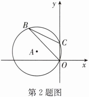 2. 如图,半径为 3 的 $ \odot A $ 经过原点 $ O $ 和点 $ C(0, 2) $,$ B $ 是 $ y $ 轴左侧 $ \odot A $ 优弧上一点,则 $ \tan ∠ OBC $ 的值为 (