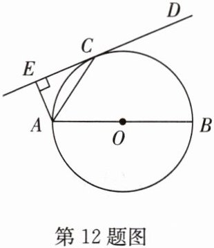 12. (2023·宁夏)如图,$AB$是$\odot O$的直径,直线$DC$是$\odot O$的切线,切点为$C$,$AE⊥ DC$,垂足为$E$.连接$AC$.