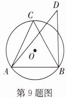 9. 如图,若锐角△ABC内接于⊙O,点D在⊙O外(与点C在AB同侧),则下列结论:①sinC>sinD;②cosC>cosD;③tanC>tanD. 其中正确的是