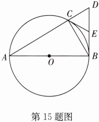 15. 如图,△ABC内接于⊙O,$AB$为⊙O的直径,$BD ⊥ AB$,交$AC$的延长线于点$D$。