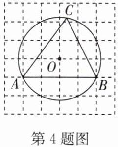 4. 如图,在正方形网格中,每个小正方形的边长都是 1,$ \odot O $ 是 $ △ ABC $ 的外接圆,点 $ A $,$ B $,$ O $ 在网格线的交点上,则 $ \sin ∠ ACB $ 的值是